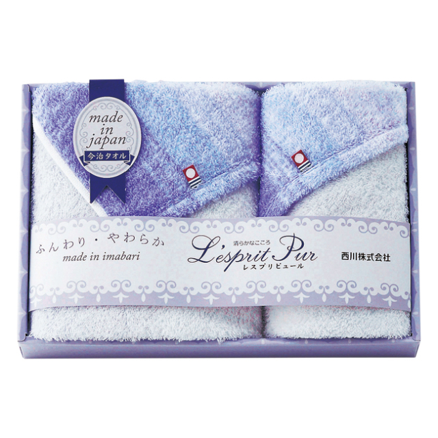 純真な想いからくる、清らかなこころのイメージを清楚なパープルグラデーションを使ってふんわりとやわらかなタオルギフトにしました。