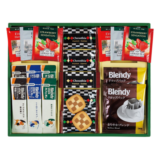 | 内容 | チェスティアクッキー×8、AGFブレンディコーヒードリップ式7g・紅茶(アールグレイ・イングリッシュブレックファースト・ストロベリー)2g・AGFブレンディスティック(エスプレッソ・オレ5.8g・カフェオレカロリーハーフ5.4g・カフェオレ8.2g)×各2 賞味期限:製造日から180日 |
