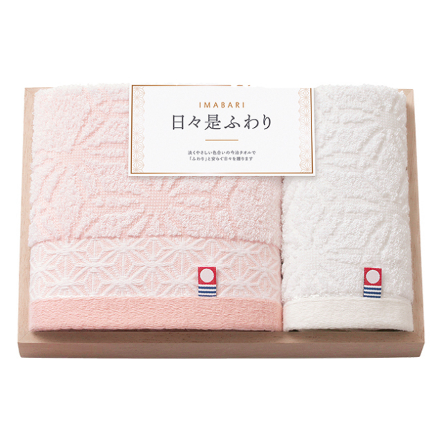 | 商品名 | 【送料無料】 今治 日々是ふわり 木箱入り フェイスタオル・ハンドタオルセット No.15 |